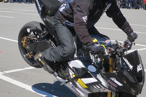 11:01 エクストリーム・ショー 11時になってバイクのエクストリーム・ショーが始まりました。 後ろの観客さんと一緒になっちゃって、写真が見づらいですが、ご勘弁。 エクストリーム・バイク2台がウィリーをしながら、キャンギャルの周りをグゥ〜ルグル。 器用ですね。 (^o^) |