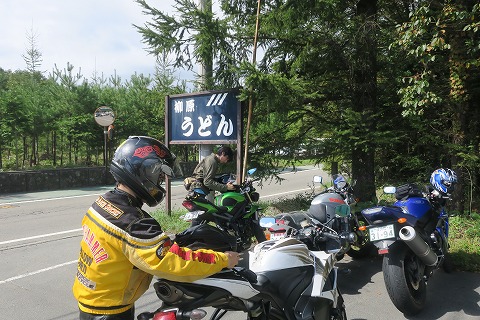 12:38 柳原うどん 昼食を食べるためにやってきたのは、おなじみのファナック通りにある”柳原うどん”。 お昼の時間を過ぎて駐車場が混んでいたので、道路脇の空いたスペースにバイクを駐めます。 |