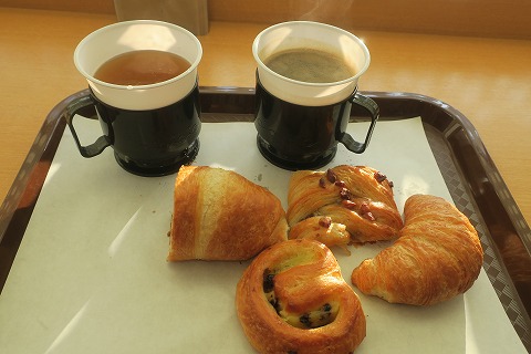 6:50 朝食 歯を磨いて、顔を洗い、服を着て、荷物を持って1階にある食事エリアまで下りてきました。 無料のサービスの朝食を食べます。 |