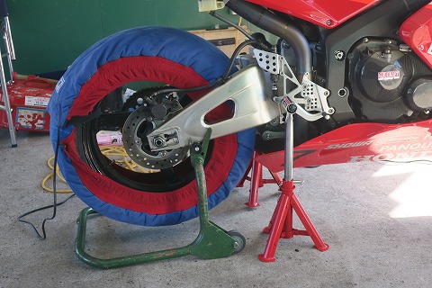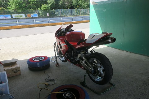 8:57 やっと やっと、ハイエースから(バイクを)下ろしました。 で、今日の走行会ですが、せっかく1日あるんで、 は体力的に無理なので、色々やります。 まずは、リヤサス。 後で写真出てきますが、今着いているリヤサスは、今回中古で買ったCBRに元々装着されていたもので、オーバーホールとかの履歴がわかりません。 (もしかしたら、全然オーバーホールとかしていない可能性もあり) なので、リヤサスを交換しようと思います。 せっかくなので、今の状態で走ってみて、途中で交換して、変わり具合を確認したいな。と、こんなのは1日走行時間が取ってあるときじゃないと、なかなか出来ません。 |