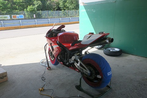 8:30 まだバイクが ピットにバイクを駐めて、荷物を下ろし始めたけど、まだバイクが乗ったままだ。 「準備が遅いぞ!」 |