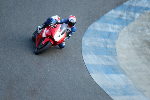9:58 便所前コーナー No.9コーナーにあたるヘアピンコーナーの通称便所前コーナー。 通称すり鉢の左のNo.6コーナーを立ち上がって、2速→3速→4速とシフトアップして、便所前に向けアプローチでブレーキングして4速→3速→2速とシフトダウン。 シフトダウンを終えて、コーナーリングに直前に(自分の場合)左のステップを土踏まずからつま先に踏み換えて、バイクを倒しこむんだけど、それが上手く踏み換えられない。 「1年半のブランクか?」 「前回の筑波の練習でステップを一番上の段に変更したけど、ステップ位置が高すぎたか?」 なんて、考えながら周回を重ねます。 ステップの踏み替えが上手くいかないと、イン側のヒザを上手く出せなくて、バンク角が不安定になります。 って言う低レベルな問題と格闘中。(笑) |