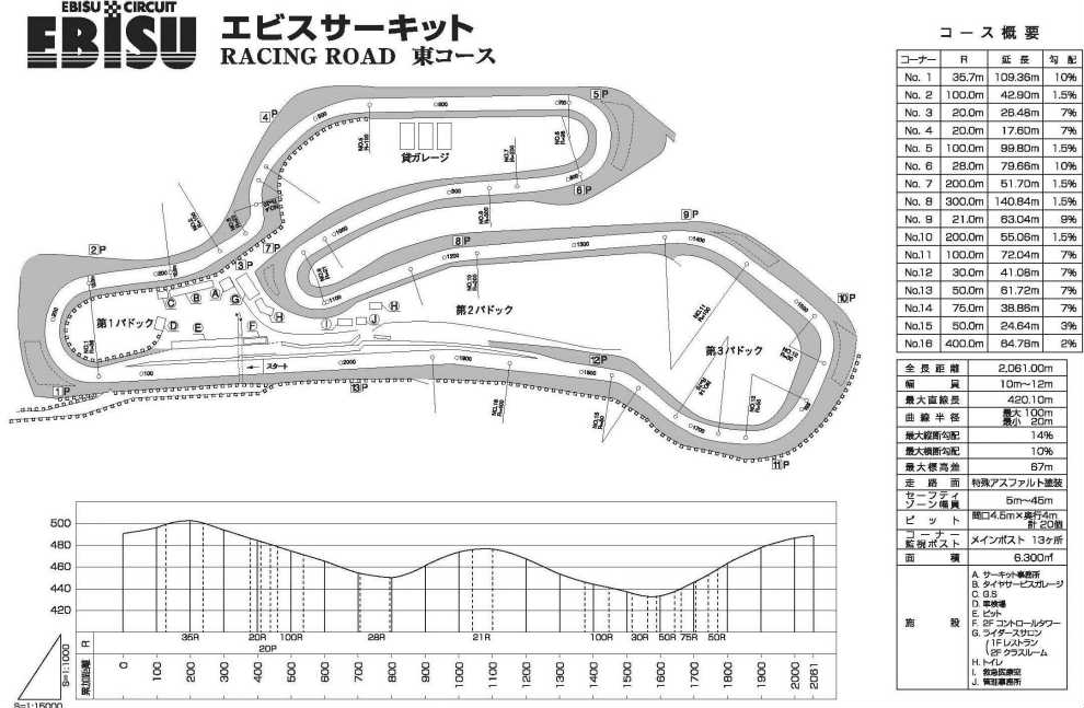 9:45〜9:59 1回目 走行1回目。 コースインして、徐々にタイムアップ。 詳細は憶えてないけど、途中でしくじったり、前走を抜いたりするとタイムが落ちてます。(笑) 1回目のベストは11周目に6秒469で、12周回して、ピットイン。 下に、一応エビスの東コースのコース図を載せておきます。 パドックにある”H”の建物がトイレ。 今は水洗になったけど、昔はぼっとんトイレでした。 なので、No.9コーナーは今も通称便所前コーナー。(笑) ※ エビスサーキットのホームページから転載させていただきました。 |