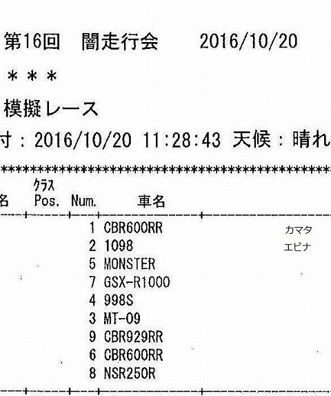 | 2016年10月20日(木) エビスサーキット走行会(お昼の部) | |||