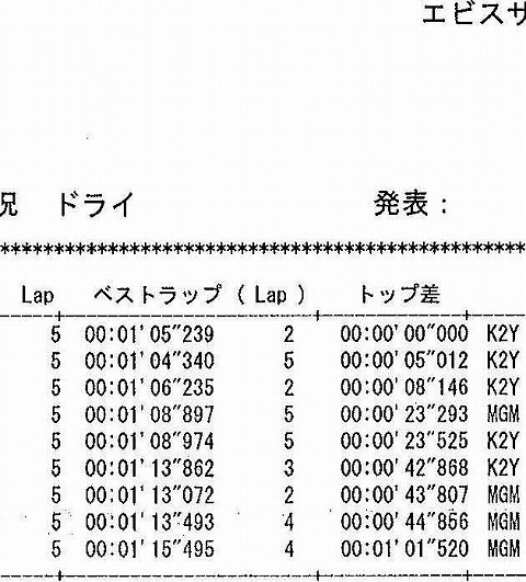 11:38 レース終了 レース終わりました。 結局、エビナさんは来なかった。 一人旅になっちゃいました。 ベストラップはエビナさんの方が1秒近く速いのに。(汗) 5秒のギャップが出来てたんだ。 |