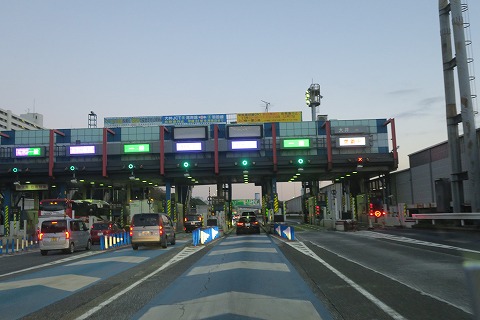 6:01 首都高湾岸線 鳥浜町本線料金所 自宅のある横須賀を出発して、まずは横須賀インターから横浜横須賀道路に上がり北上。 その後、釜利谷ジャンクションから首都高速湾岸線に入り、鳥浜町の本線料金所までやってきました。 6時を回りましたが、まだ空は暗いです。 |