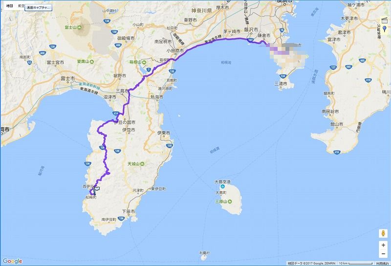 | 自宅〜西伊豆松崎まで: 162.8 km | |