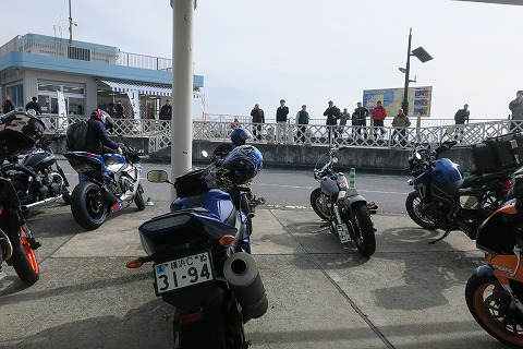 9:45 西湘パーキング 自宅を出発して、まずは湘南の海岸線を走る国道134号線を西走。 その後西湘バイパスに上がり、自宅から約1時間、西湘パーキングに到着しました。 今日は駐まっているバイクが多いですね。 |