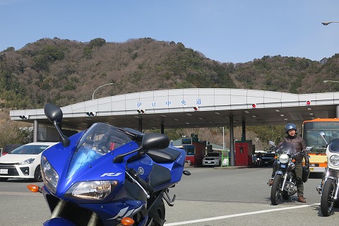 10:43 現金で 伊豆縦貫道を函南まで南下した後、そのまま伊豆中央道へ。 伊豆中央道の江間(えま)トンネルを越えたところにある料金所までやってきました。 伊豆中央道は静岡道路公社が運営する有料道路です。 ここでバイク160円を払います。 静岡道路公社は、ETCを導入してないので、料金所でいちいち現金を払わなければなりません。 すっかりETCになれた自分は、とっても不便に感じます。 (慣れって怖いね。) バイク用のETCは2006年の11月から運用が始まったみたいだけど、ETCの車載器を付けたのは、確かこのR1からだったね。 |