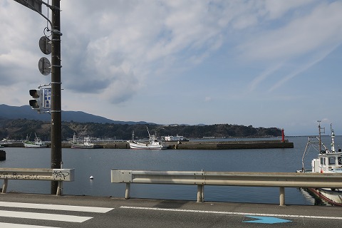 12:06 松崎の市街地に 県道59号線を下り、松崎の市街地で国道136号線に突き当たりました。 ここを右折して、松崎の市街地に入ります。 |