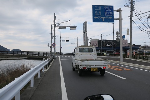 11:01 県道17号沼津土肥線(ぬまづといせん) 長岡北インターからは国道414号線に入り狩野川放水路に沿って西走。 口野放水路の交差点で県道17号線に入り、駿河湾に沿って西走を続けます。 |