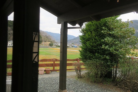 12:24 借景 店を挟んで、県道の反対側は、田んぼです。 店の窓から田園風景を眺めながら、のんびりと食事をとることができます。 今は、田植えまでの間の緑肥(りょくひ)として、(なんだかわかりませんが)オレンジ色の花が咲いていました。 借景として良いですね。 |