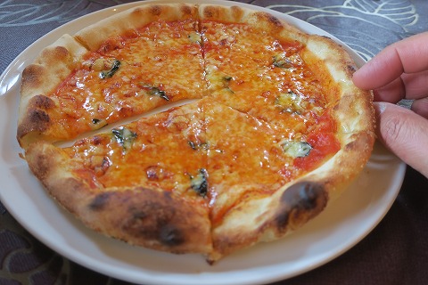 12:40 マルゲリータ パスタだけでは、ちょっと足りないと思ったので、2品頼みました。 パスタを食べ終えたタイミングで運ばれてきたのは、もう1品のピザ、マルゲリータ。 冷めないうちにいただきましょう。 |