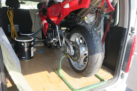 8:11 チェーン調整 恒例の行事。 まずは、ハイエースに積んである状態でチェーンの調整。 しつこく書いておくと、CBRをハイエースに積むと、CBRがちょっとだけ長くて、リヤゲートにタイヤが当たってゲートが閉まらない。 チェーンアジャスターを緩めてリヤタイヤを一番前に移動するとギリギリ入る。 なので、ハイエースに積むたびに、チェーンアジャスターをずらして、リヤタイヤをずらしているんです。 バイクに乗らない人には、なかなか伝わりにくい作業なんです。(笑) さて、老眼が進んでノギスの目盛りが読みにくくなりデジタル・ノギスを買ってから、調整するのに難儀しなくなったので、以前ほど面倒くささはなくなりました。 ( ̄。 ̄;) |