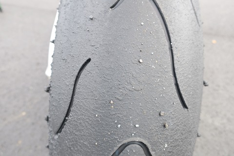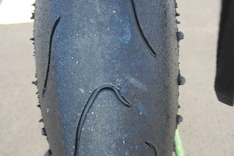 8:26 タイヤは ユーズドのリヤタイヤはこんな感じ。 6〜7分山と言ったところでしょうかね。 今日を含めて、あと3回くらい、練習には使えそうです。 (^_^;) |
