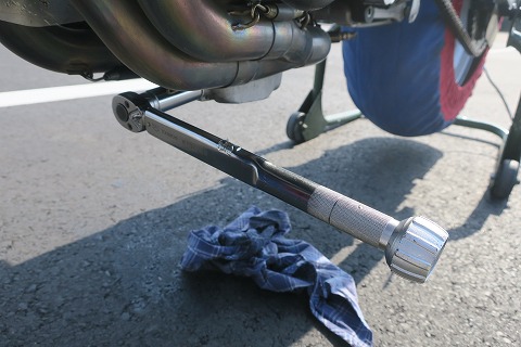 8:30 ドレンボルトを オイルが一通り抜けたら、ドレンボルトを締めて、トルクレンチを使って締め付け。 写真に撮るのは備忘録。 トルクレンチで締める作業も、締め忘れないため。 これをやっておかないと、走っている最中に、ふと、「オイルのドレンボルト、締めたっけ?」なんて思い出したら、不安で不安で。(笑) |