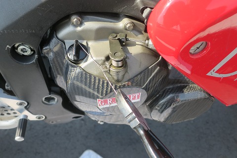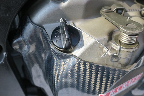 8:47 フィラーキャップも ドレンボルトをワイヤリングしたら、フィラーキャップも同じ様にワイヤーロック。 昔は、このワイヤーツイスター(工具)で、クルクルって、ワイヤーをより線にするのにあこがれたけど。 そんな感覚、わっかんないだろうなぁ〜。(笑) |