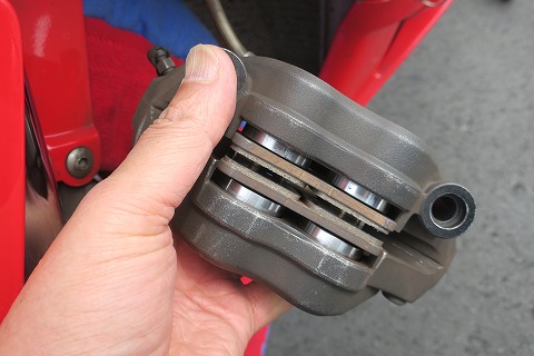 10:27 パッドをチェック 1本目の走行前にブレーキパッドが残り少なかったので、空いた時間にチャック。 減っていたら、エビスの走行会用にキープしておこうと思ったけど、それほどでもないね。 このまま使っちゃいます。 |