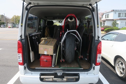 12:28 積み込み完了 今日の練習が終わったので、ちゃっちゃと積み込み。 |
