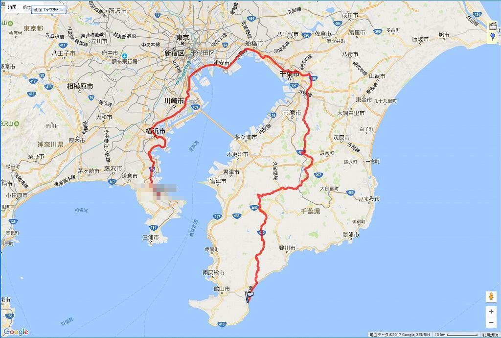 | 帰路の道程:南房総市千倉町〜千葉市〜自宅:213.5 km | |