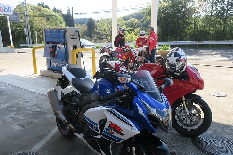 15:09 またまたノンストップで お昼を食べた後は、またまたノンストップで2時間ほど走りっぱなし。 慣らしでペースが遅いと、疲れないので、どうしても休憩なしで走りっぱなしになっちゃいます。 走っていても、今日あたりは、暑過ぎて水分補給休憩も要らないし、寒過ぎてトイレ休憩もせずに走り続けられるからね。 そして、タンクバックが使いにくいので、途中でデジカメを取り出すのも、おっくうなこともあって、途中の写真が無いんだよね。 <(_ _)> で、停まったのは、アイスエイジさんの749Rのガソリンが保たないから。 寄ったのは、市原市と言っても広いざんす。 県道81号市原天津小湊線(いちはら あまつ こみなと せん)通称清澄養老ラインと県道171号加茂長南線(かも ちょうなん せん)の交差点近くにあるMOBILE のスタンド。 昔っからこのスタンドは、元旦ツーリングの時にも開いていた記憶が・・・。 |