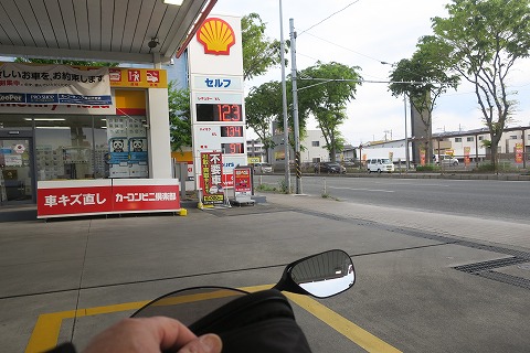6:21 ガソリン給油1回目 保土ヶ谷バイパスを北上し、高架化された東名横浜インターを過ぎ相模原市の上鶴間にきたところで、今日1回目の給油をします。 出発の時点で、前回のツーリングを終えたままだったので、タンクには半分くらいしかガソリンは入っていませんでした。 ここで、満タンにして、スタートです。 |