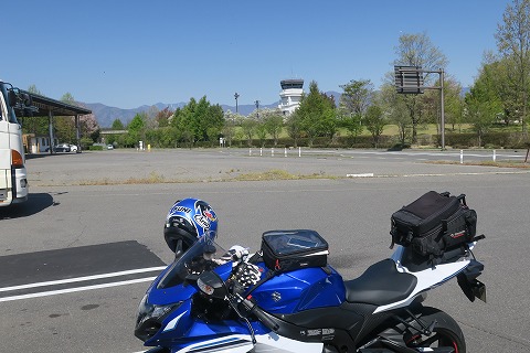 9:08 ちょっと遅めの 下道を走っていると、信号機に”松本空港西”の表示。 近くに、ローソンがあったので、ちょっと遅めの朝食兼休憩をします。 後ろに松本空港の管制塔が見えますね。 |