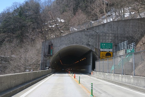10:36 安房トンネル 国道158号線を西走し、乗鞍高原や上高地へのアクセス道路を通過し、長野県と岐阜県の県境に跨がる安房トンネルの入口までやってきました。 辺りの日陰になる斜面にはには、まだ残雪がありますね。 それでは、安房トンネルを抜け、一気に岐阜県に向かいましょう。 |