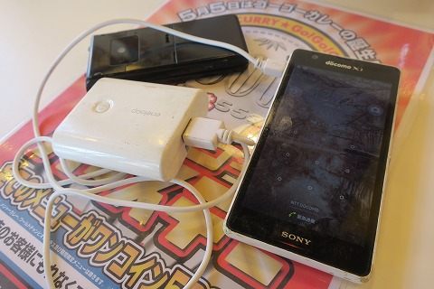 13:25 スマホを充電 入口にある券売機でチケットを買って店内のカウンター席へ。 「空いてますね。」 GWですが、店内は自分と同じ様にお一人様が多いですね。(穴場です。) 席に着いたら、待っている間、スマホに充電。 前回バッテリーを交換してからぼちぼち2年経つので、バッテリーの保ちが悪くなってきてまいます。(このスマホも時期4年かぁ〜。) 今日は基本スマホのナビは使ってないですが、最後宿に向かう時だけは、スマホのナビが頼り。 そのときにバッテリー切れにならないよう、お昼の空いた時間に充電しておきます。 充電に使っている電源は、SANYOのエネループ。 |