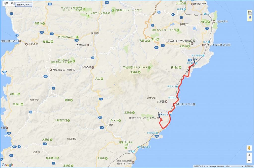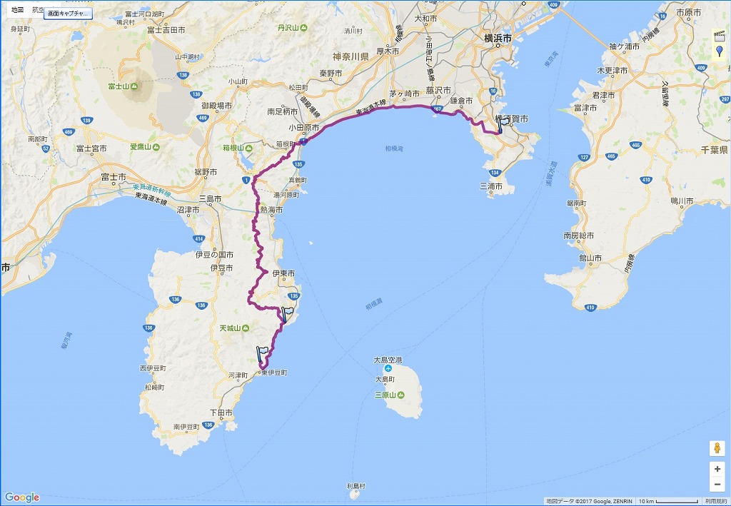 | 帰路の道程:東伊豆発電所〜伊豆スカイライン〜自宅:147.7 km | |