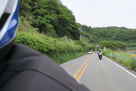 12:22 国道135号線は うまいもん処を出発し、東伊豆の海岸線を走る国道135号線を南下します。 いつも週末は混んでいるイメージの国道135号線ですが、今日は比較的空いていますね。 それでも、センターラインは黄色で、キャッツアイが埋め込まれているので、ちと退屈。 デジカメを取り出して、後続を撮ってみたりします。 |