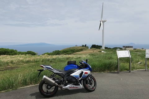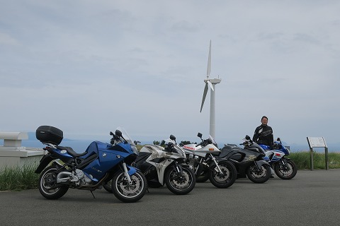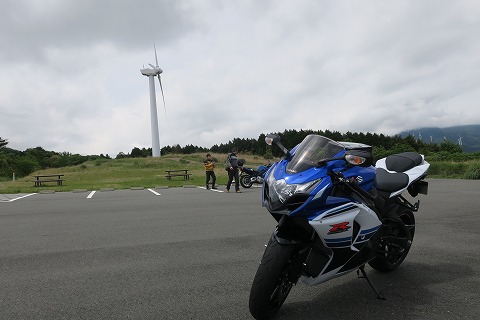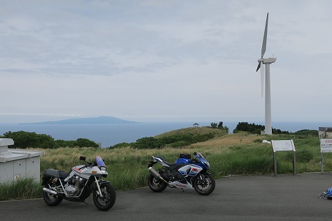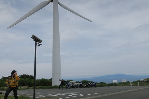 12:38 撮影会 ここは景色が良いので、バイクの撮影会をしようと言うわけです。 駐車場もタダだしね。 お金がかかりません。 ただ、自販機も無いのでジュースじゃんけんができませんが。(笑) 手前に風力発電機の風車。 その向こうに相模湾を挟んで伊豆大島が望めます。 GPSレコーダーのログで確認すると標高は400mを超えていることもあって、伊豆大島がすぐ近くに見えますね。 空がもう少し青かったらもっときれいだったろうね。 |