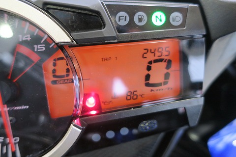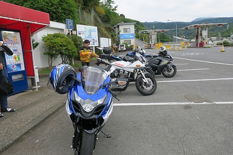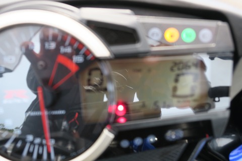 14:55 燃料ランプ点灯 亀石のパーキングで休憩(ミーティング?)した後、出発しようとしたら燃料警告灯が点灯。(写真がボケボケです) お昼を食べる前にほかのメンバーはガソリンを給油したんだけど、自分はしなかったんだよね。 まだGSX-Rを買って浅いので、航続距離がまだわからないんです。 どれくらい走れるか今日確認しようと思って、あえてガソリンは給油しませんでした。 で、燃料ランプは206kmで点灯しました。 燃料タンクはたぶん18リットルくらいのはずですから、250kmは確実に走れるはずなんですけどね。 ここから先、ガススタンドがしばらく無いところなので、ちょっとタイミング的にまずかったですね。 |