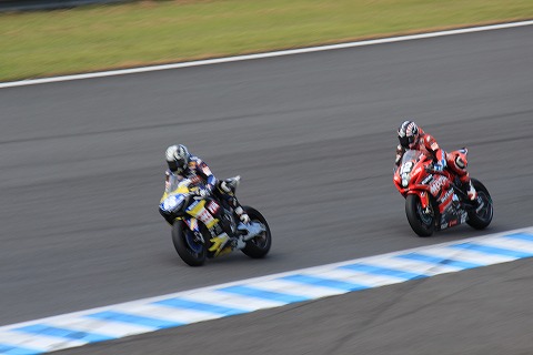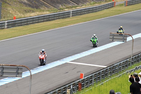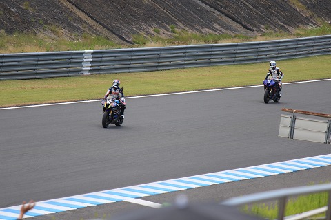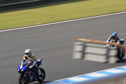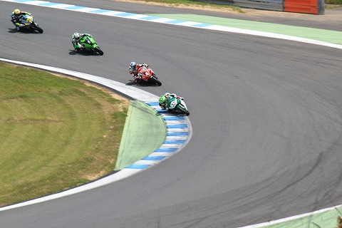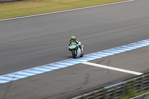 12:45 レース終了 その後、#5の生形選手を先頭に落ち着いたレース運びで終了。 榎戸選手は15位から追い上げて、7位まで順位を上げたところで、チェッカーで終了しました。 去年の筑波の時もそうだったけど、自分が見に行くと転倒する確率が高いかな。 でも、鈴鹿の時はチャンピオンを獲ったので、そうとも言えないか。 |