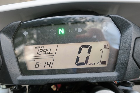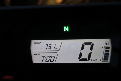 19:00 ガソリンは 本日の走行距離は 751 − 495 = 256 km でした。 後でマニュアルを見たら、ガソリンが残り1.5リットルになったら、燃料計の最後の1目盛りが”点滅”状態になるらしい。 タンク容量が7.7リットルなので、6.2リットル使ってから点滅になるんだね。 今日はもうちょっとだった訳だ。 とすると、たぶんリッター25kmくらい走れるので、 25 × 7.7 = 192.5 まあ、200km弱くらいは走れるんだね。 150km前後でガソリンを入れるのが安全でしょう。 |
