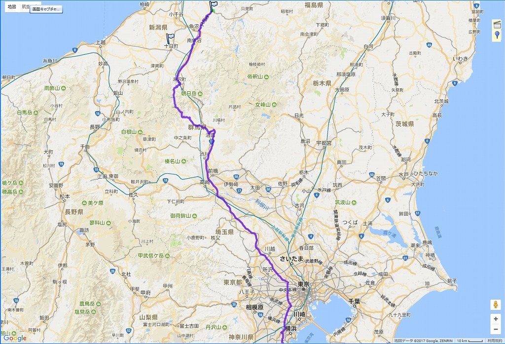 | 往路の道程:横須賀→関越練馬→沼田IC→小出→入広瀬:310.4km | |