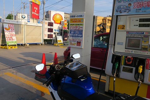 6:06 乗る前に給油 入広瀬には関越を使うルートで向かいます。 まずは自宅のある横須賀を出発して、横浜横須賀道路に上がり、その後横浜新道を経由して、第三京浜で北上して都内へ向かいます。 玉川インターで第三京浜を下りたら、環八に入り時計回りで、矢原の交差点まで進み、左折して関越方面へ。 関越に上がる前に、手前にある shell のスタンドで今日1回目のガソリンを給油します。 |