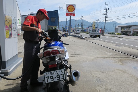 9:25 塩沢で給油 三国トンネルから湯沢までのワインディング区間を下り新潟平野に出ると国道17号線は退屈な道に代わります。 塩沢まできて、少しガソリンも寂しくなったところで、国道沿いにshell のスタンドがあったので、今日2回目の給油。 ここから先、小出まで国道17号線で北上します。 |