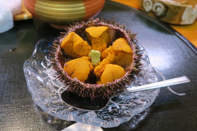 20:09 ムラサキウニ ウニ、お代わりです。(笑) 今度は、ムラサキウニ。 旨し。 ムラサキウニはさっぱり味ですね。 個人的には、パンチのある濃厚なバフンの方が好み。 しかし、ウニって見れば見るほど不思議な生き物。 中が5等分て、なんで? お酒は、田酒→寒立馬と日本酒を呑んで、やっぱり六趣。 三沢市のお隣、六カ所村で造られている焼酎です。 原料は特産のナガイモを使っています。 六ヶ所村が出資している、六カ所地域振興株式会社が製造していて、役所とかが出資して作っている物としては、大成功していますね。 |