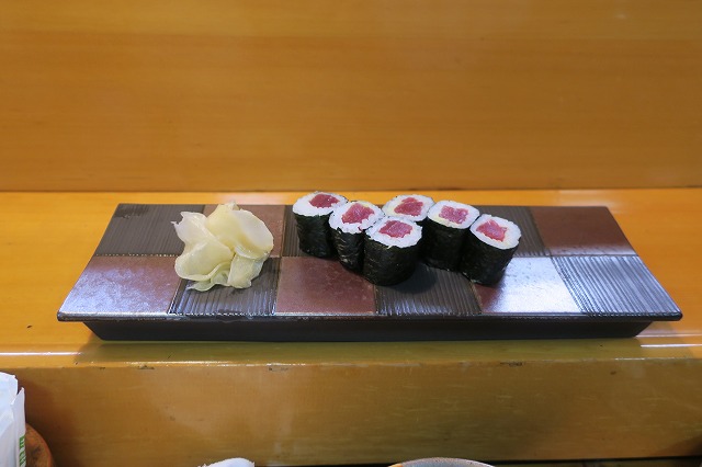 19:57 鉄火巻き 巻物は鉄火で。 巻物を頼むときは、鉄火かかんぴょうです。 巻物をつまみに、飲むのが好きです。 今日は、お造りの中トロが美味しかったんで、鉄火を頼んでみました。 鉄火は味がさっぱりでした。 鉄火とお造りの中トロは別の個体だったみたいですね。(笑) お酒は、一杯目”田酒”から、2杯目は下北のお酒”寒立馬(かんだちめ)”に。 本州最北端の酒蔵で造っているらしい。 日本酒らしいパンチのある味っと、スマホのメモに残っていた。(笑) |