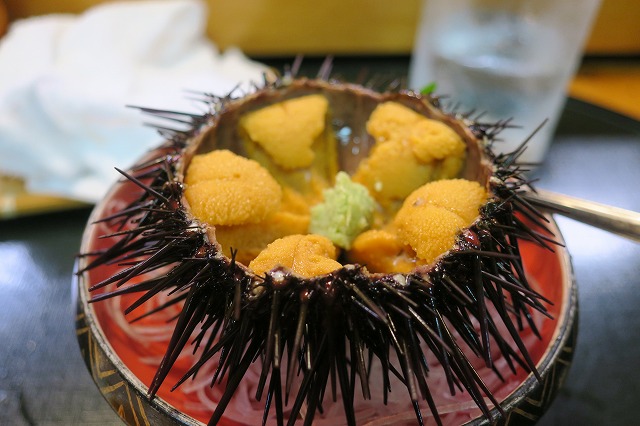 19:37 ウニ ウニです。 バフンウニ。 今が旬です。 言わずもがな、書かずもがな、美味しいです。 味が濃いです。 これを食べちゃうと、他でなかなか食べようと言う気がおきません。 贅沢です。 安くないけど、それほど高くないです。 ラーメン一杯ぐらいだと思います。 食べる価値はあると思って食べてます。 (^_^)v |