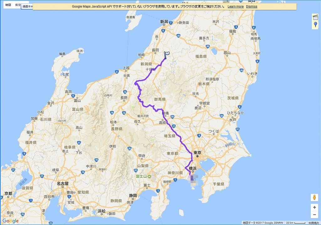| 往路の道程:横須賀→関越練馬→榛名湖→草津温泉→横手山→野沢温泉→小出→入広瀬:432.3km | |