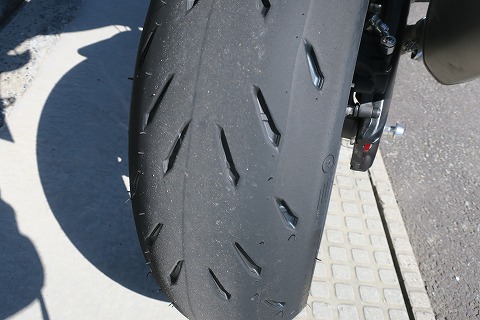 9:35 ニュータイヤ 夏休みに東北をツーリングする予定だったので、休み前にタイヤを交換したんですが、東北ツーリングは雨で走らず。 その後に仕事場まで200kmくらい往復しただけでした。 新しく入れ替えたタイヤはMICHELIN の POWER RS です。 このタイヤ、履き替えた直後は、ケースがなじんでいないせいか、転がり抵抗がものすごく小さい感じで、走っていてクラッチを握ると、そのままスーって走って行っちゃう感じでした。 その感じはバイクをバンクする方向もそうで、抵抗なくパタンってバンクする感じで、体が付いていかなくて、そして接地感もあまりなくて、ちょっと怖い感じがしましたね。 でも、ちょっと(数百キロ)走ると、タイヤも落ち着いてきて、体もなじんで、違和感なく走ることができました。 |
