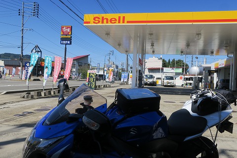 9:35 今日2回目 道の駅 草津で水分を補給したあと、ちょこっと走って草津温泉の市街地に入ったところで、ちょうど shell のスタンドがあったので、今日2回目の給油。 関越の入り口の谷原のスタンドでガソリンを入れてからここまでおおよそ175kmでした。 この先は、しばらくガソリンスタンドが期待できない路線を走る予定です。 |