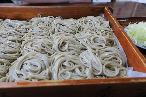 13:37 ぼっち しかし、量が多いです。 これで3人前だそうですが、へぎそば特有の盛り付け方で全部で5個×3列で15”ぼっち”あります。 1人前が5ぼっちか。 でも、このぼっち1個が結構量が多いです。 前回、小嶋屋総本店で食べたとき(下の写真)は、1ぼっちは一度で箸でつかんで口に運べましたが、ここのは無理。 ぼっち半分でも、口の中が一杯になってしまうぐらいの大きさです。 1ぼっちの大きさが小嶋屋総本店の3倍くらいはありそうですね。 小嶋屋総本店が1人前10ぼっちでしたが、ここ福寿庵は1人前5ぼっち。 1ぼっちが3倍くらいなので、1人前で1.5倍くらいある勘定になりますね。 (どうでもいい情報だけど・・・・。) ( ̄。 ̄;) ※ ”ぼっち”と言うのは、へぎそばや戸隠そばなどで盛り付けるときに”束”にして盛るの特有の盛り付け方の様です。 |