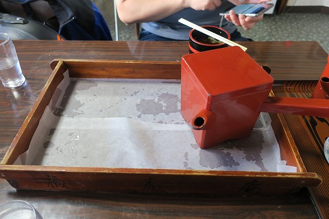 13:51 完食 完食! 最後はそば湯でまったりと。 そば湯の湯桶は四角でした。 そして、へぎは”ザル”構造にはなってなかったんですね。 へぎの底には、くっつくのを防ぐために、紙が敷かれていました。 全部で15ぼっちあったので、最後の1個は取り合いの喧嘩! なんて、ことはありませんでした。 2人ともお腹一杯。 お互いに譲り合いましたが、最後の1ぼっちは自分がやっつけました。(笑) いやいや、2人で来て良かったです。 1人だったら絶対に食べることが出来なかったでしょう。 「ごちそうさまでした。 美味しかったです。」 <(_ _)> |