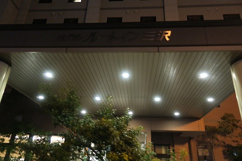 18:22 宿泊先に到着 三沢ツーリングの1日目は、朝9時に自宅を出発して、ひたすら高速を巡航し、18時半前に三沢の市街地にあるホテルに到着しました。 予約したホテルは、ルートイン三沢です。 ホテルの駐車場の隅にバイクを駐めて、早速チェックインすることにします。 |