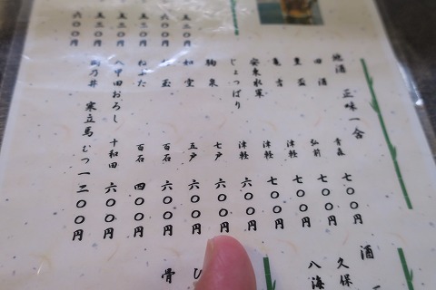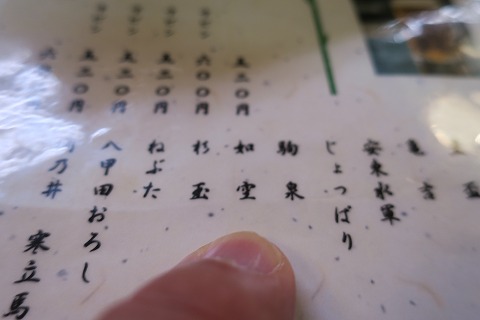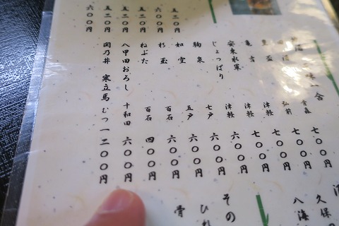19:45 日本酒に 生ビールの後は早々に日本酒に移行。 真夏だと、もう少し冷たいビールとか飲みたいところですが、お彼岸までくると暑さも厳しさがなくなるので、それほど冷たいものを欲しがらなくなります。 日本酒は青森のお酒を中心にそろえてあります。 まずは1杯目は、七戸のお酒で”駒泉(こまいずみ)”でいきましょう。 |