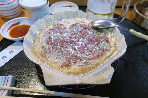 19:32 お任せで まずはお刺身をお任せで。 お刺身は、地物を中心にサバとかカレイとかに混じって、赤黒いのがクジラ。 今の時期は、マグロは端境期で良いのがあまり無いようで、供されませんでしたね。 クジラは血臭いと言うか、あまり好きではありません。 供されれば食べますが、自分から注文することはまずありませんね。 久しぶりに食べて、味を確認しました。(笑) |