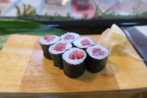 19:50 鉄火巻き お酒のあてに、巻物を。 巻物は鉄火巻きがお気に入りです。 鉄火巻きが美味しいと、大概マグロの握りも美味しいです。 ネギトロとかだと、握りに使うマグロとは違う場合もあったりするんですよね。 やっぱり、マグロは美味しい。 |